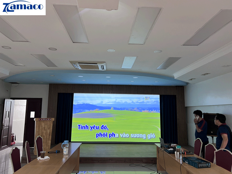 Lắp đặt Bộ máy chiếu 4K LG BU50NST cho nhà sách FAHASA Quận 1 – Một bộ sản phẩm mà Công ty TNHH Công Nghệ ZAMACO cung cấp cho phòng họp Nhà sách FAHASA Quận 1 bao gồm: Máy chiếu LG 4K UHD BU50NST, màn chiếu điện Dalite 180in tỉ lệ 16:9, dây tín hiệu HDMI 2.1 Ugreen 30m, giá treo máy chiếu Grandview và thi công lắp đặt trọn gói. Combo hơn 200 triệu đồng.