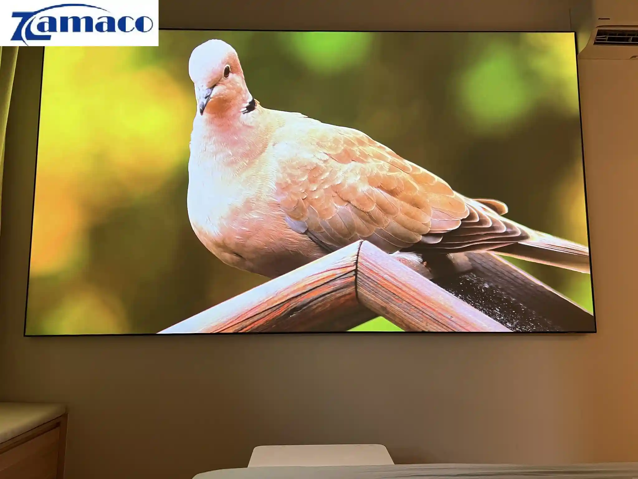 .Một combo máy chiếu siêu gần 4K VAVA LT002 kết hợp màn Quang học ALR UST 120in dành cho phòng ngủ khách hàng quận 10. Chi tiết sản phẩm: