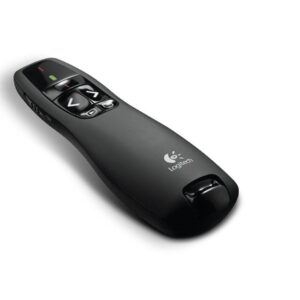 – Trên thân bút Logitech R400 được thiết kế hai nút điểu chỉnh qua lại để tạo thuận tiện cho người thuyết trình quản lý tốt những slide của mình.