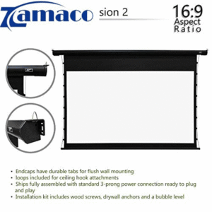 Màn chiếu EXZEN Tab-tension 100 inch tỉ lệ 16:9 được cung cấp bởi Công ty TNHH Công Nghệ ZAMACO. Màn chiếu điện 100 inch tỉ lệ 16:9 – có remote điều khiển. Kích thước của màn chiếu điện 100 inch là 2210 x 1250 mm lọt lòng, tỷ lệ màn chiếu là 16:9 có remote bấm để điều khiển cuộn lên xuống. Màn chiếu loại Tab-tension có dây căng 2 bên giúp cho màn chiếu phẳng hơn.