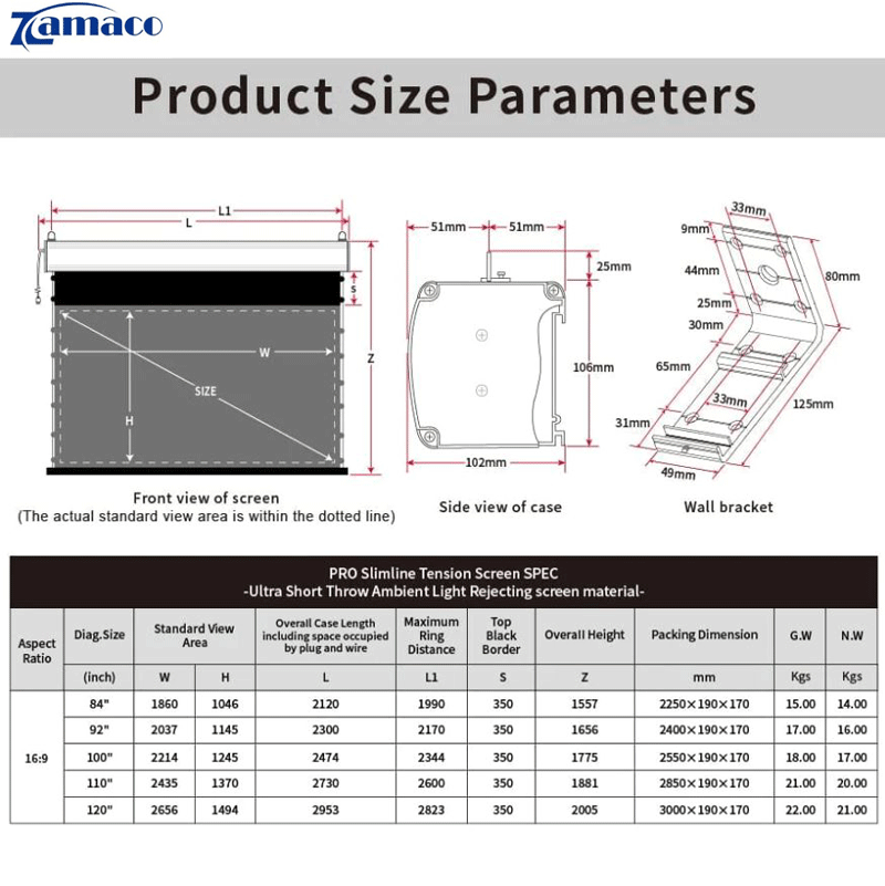– Màn hình căng mỏng PRO P Màn hình loại bỏ ánh sáng xung quanh ném cực ngắn