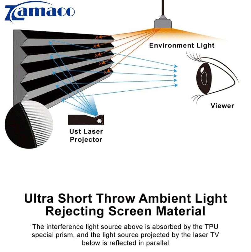 ●Chức năng loại bỏ ánh sáng xung quanh (trần nhà) tuyệt vời 「Chỉ phù hợp với máy chiếu laser UST và đặt trên bàn/sàn」