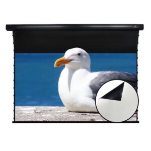 Màn chiếu Vividstorm 100in Tab-tension VBMSLW100H sử dụng chất liệu vải màn Cinema White phù hợp với tất cả các loại máy chiếu hiện nay, góc nhìn rộng 160°, độ gain đạt 1.1. Màn hình căng phẳng theo tab giúp cho bề mặt không có nếp nhăn và phẳng theo suốt thời gian dài sử dụng. Động cơ hình ống ít gây tiếng ồn, hoạt động êm ái bền bỉ.
