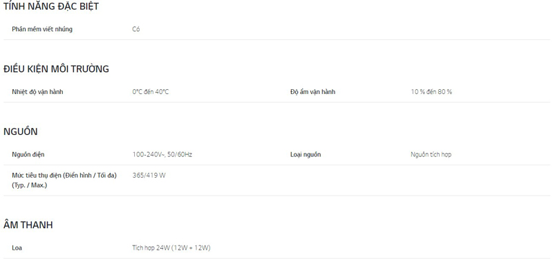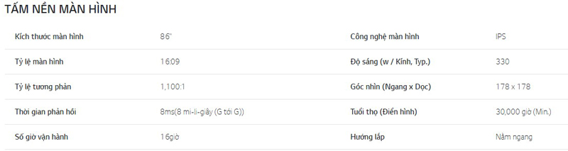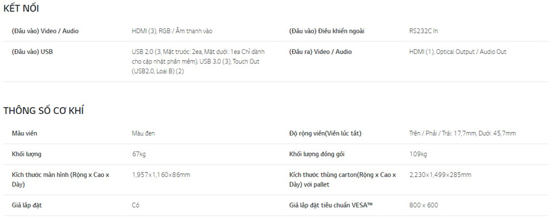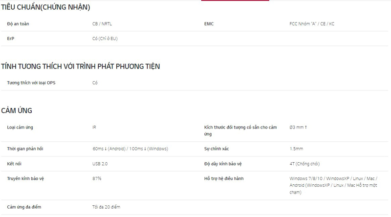 Màn hình tương tác thông minh LG 86TR3BF-B, một vài thông số chính như sau: