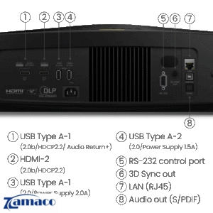 – Cổng kết nối: HDMI(x2), USB, RJ45, RS232, S/PDIF…
