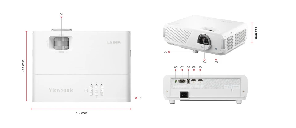 - Laser thế hệ thứ 3 với tuổi thọ lên đến 20.000 giờ.