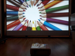 Canon LV-WX310ST là dòng máy chiếu gần với tiêu cự 0.49 cho khoảng cách chiếu chỉ vào khoảng 0.7m – 1.3m. Giảm thiểu khuất bóng, chói mắt cho người thuyết trình, tiết kiệm không gian trình chiếu.