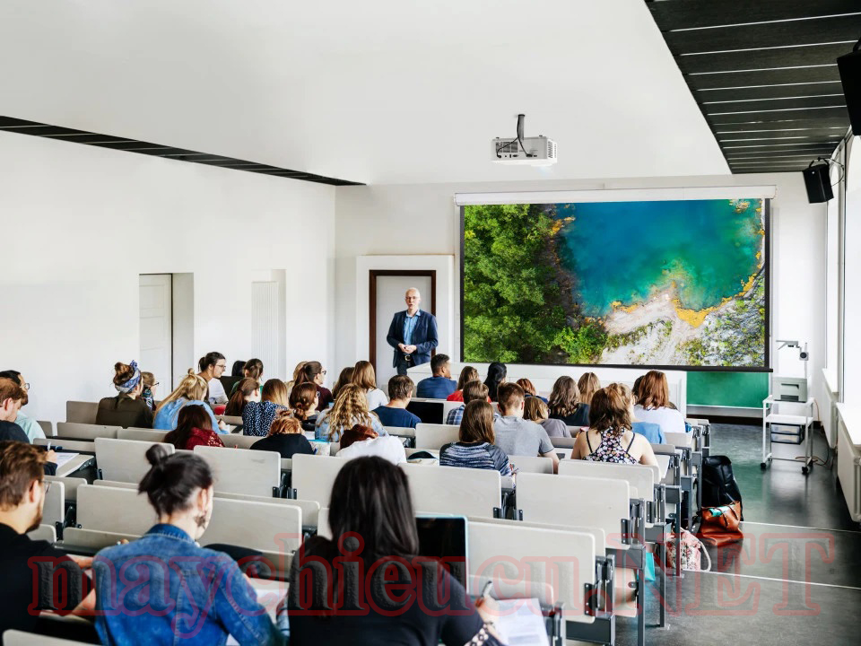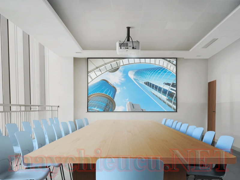 Máy chiếu cho phép kích thước hình ảnh lên tới 300”, lớn hơn và dễ lắp đặt hơn nhiều so với màn hình thương mại.